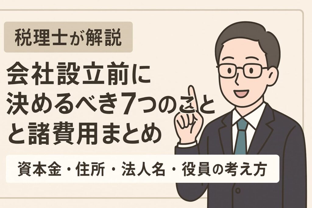 【税理士が解説】会社設立前に決めるべき7つのことと諸費用まとめ|資本金・住所・法人名・役員の考え方